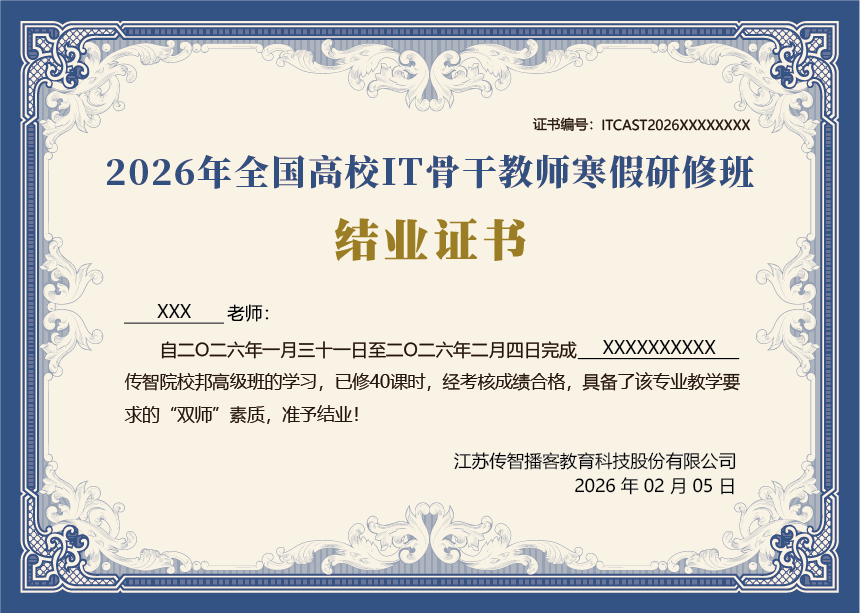 傳智教育結(jié)業(yè)證書(shū)
